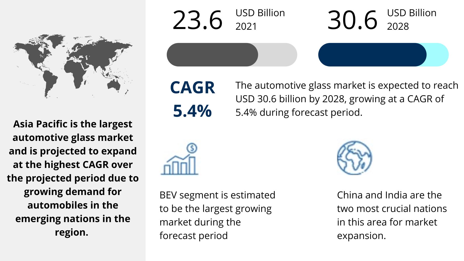 Furthermore, the continued popularity of electric vehicles in various developing nations, especially India, creates enormous potential opportunities for the Asia Pacific automotive glass market. The Indian automobile sector, where output is predicted to increase dramatically due to the country's BS-VI requirements, is also likely to boost the growth of the automotive glass market in Asia-Pacific. For instance, in February 2019, the Indian government authorized the Faster Adoption and Manufacturing of Hybrid and Electric Vehicles (FAME)-II scheme with a USD 1.4 billion financial commitment from 2019 to 2022. Such activities are projected to boost electric vehicle manufacturing in the coming years, increasing the region's demand for automotive glass.